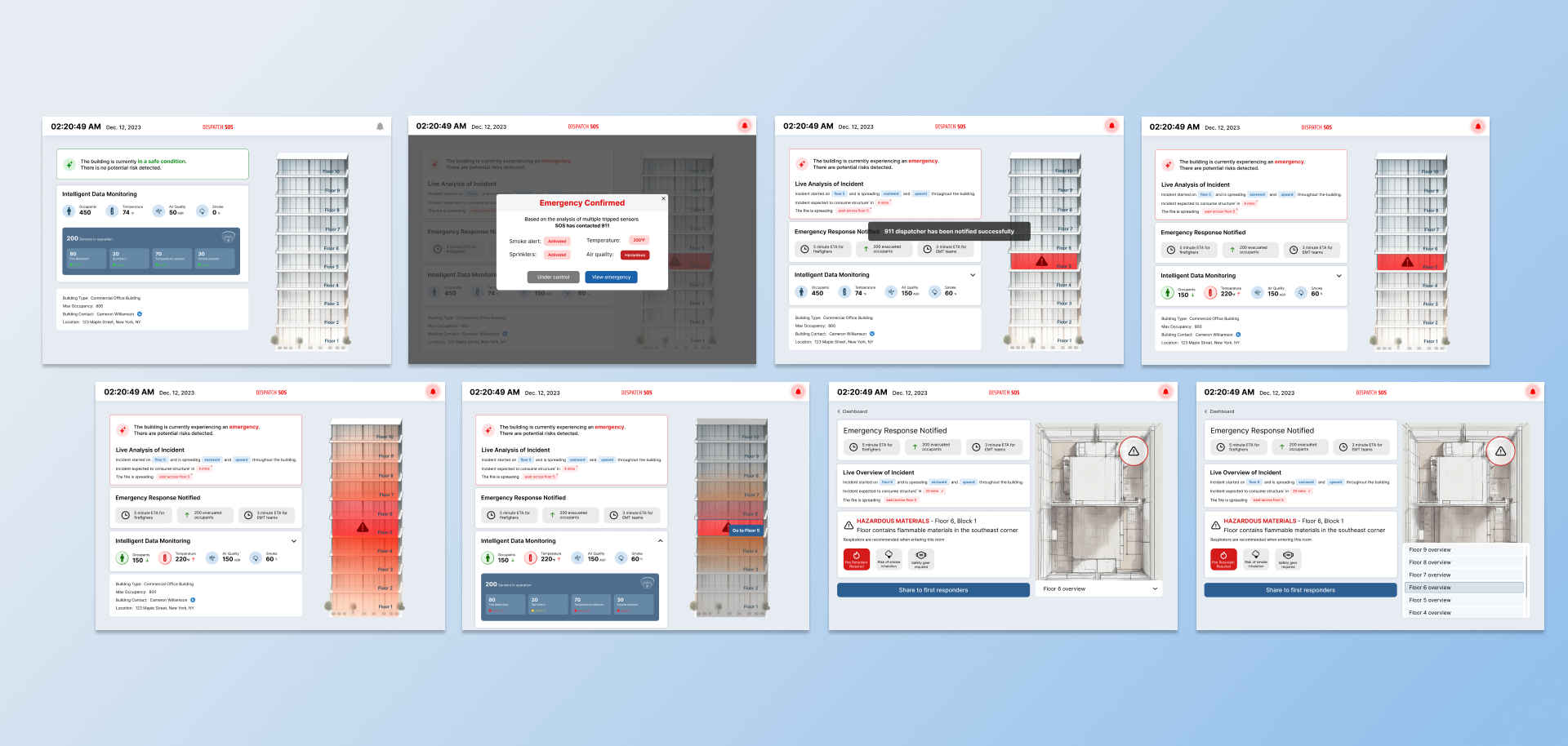 Dispatch SOS provides EMS teams with real time data of the emergency by compiling and condensing sensor data in a digestible and impactful way. This allows them to prioritize more effectively, reducing both property damage and potential losses of life